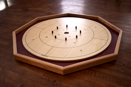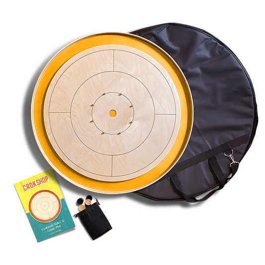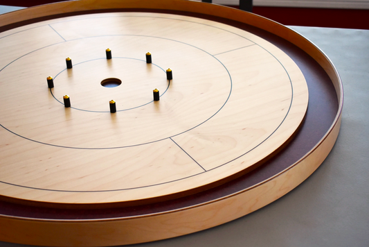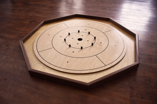 The Deluxe (Walnut Rail) Traditional Crokinole Board Bundle